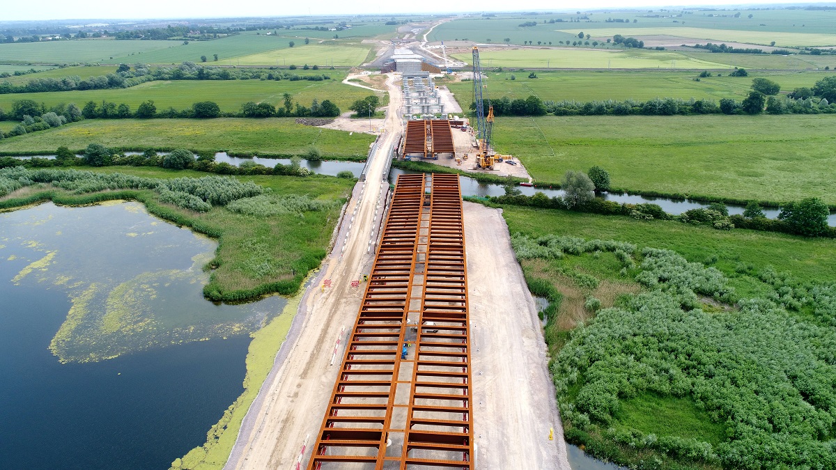 The installation of the twin bridges at Bar Hill Junction over the new A14 maximised the advantages of offsite steel fabrication and rapid assembly to improve programme times, reduce environmental impacts and minimise disruption to road users.