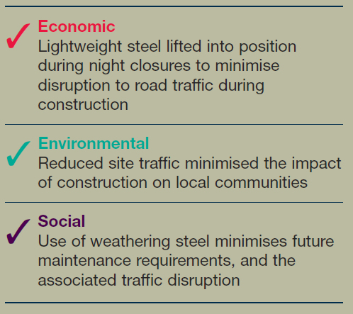 weathering steel for the bridges. The low maintenance characteristics of the material offered environmental and