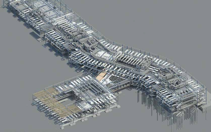 All construction documentation was produced directly from the data-rich 3D model; from the architect’s planning submission drawings, through schedules and quantities, to detailed design. “By referencing live information, it became quickly apparent when a call across the Pennines was needed to tidy up a detail, five minutes later... issued resolved,” says Mr Pye. But the use of BIM not only improved communication and co-ordination within the design team, it also offered additional outputs visually, through 4D construction sequencing.