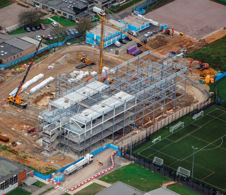 All of the schools are being built adjacent to the existing premises, while maintaining sports pitches and other sports facilities. Once the new buildings are occupied, Interserve will demolish the old schools and create new car parks and improved sports pitches. The only exceptions to this were at Goffs School near Cheshunt, and Stopsley High School in Luton. Here the sites are particularly tight, therefore demolition of some existing buildings had to be completed before the construction programme got under way. At both of these schools, temporary classrooms have been provided for the duration of the project.