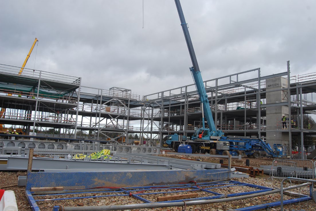 Steelwork contractor Leach Structural Steelwork completed the steel programme at Kings Langley in December, utilising one 60t-capacity mobile crane and two erection gangs.