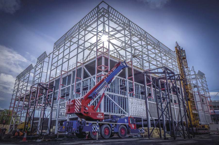 Early in the design concept it was decided that a steel frame would provide a flexible solution that would allow the design to develop right up to the start on site. Without the steel frame the project would not have been affordable, nor would it have been as dramatic and elegant, from the sports and leisure venue right through to the indoor rooftop football pitch under a 60m by 60m clear span fabric roof.
