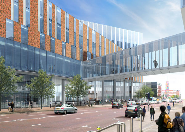 Project architect Fielden Clegg Bradley Studios’ vision for the scheme envisages the new campus stitching into the historic fabric of the city to combine social, retail and flexible learning spaces around new and enhanced streets and squares. Aiming to achieve a BREEAM ‘Excellent’ rating the buildings will house six faculties positioned one next to another in order to spark creative debate and innovation between disciplines.