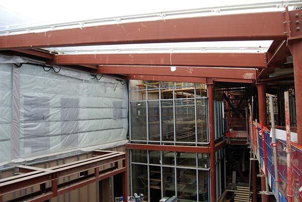 “Steelwork helps create the shape and the various complex elements and areas within the building,” says Graham Miller, JM Architects Project Architect. “The concept behind the project is for a village scenario, with the different services arranged around open courtyards and a large main entrance with an atrium.”