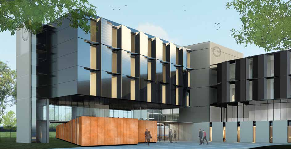 Adjoining block B is block A, which measures 30m-long × 15m-wide. Used entirely for consulting rooms, this block will remain as a single-storey structure, although it has been designed to be extended to the rear to add up to 10 additional consultation rooms, again exemplifying steel construction’s flexibility.
