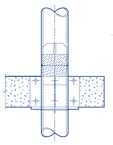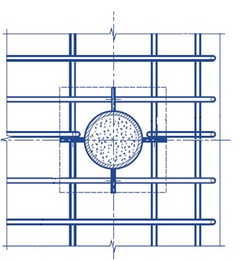 CHS columns are spaced at 3.6 metre centres inside the cladding line and provide support to the external edge of the concrete flat slab; they support between 3 and 20 storeys but have been able to be standardized in the typical case to 244.5 diameter with wall thicknesses varying from 10 to 16mm, depending on the plan position and the floor level. The maximum size used is a 355.6 diameter with a 16mm thick wall. The steel column head plates were sized so as to avoid the need to provide shear link reinforcement in the concrete slabs.