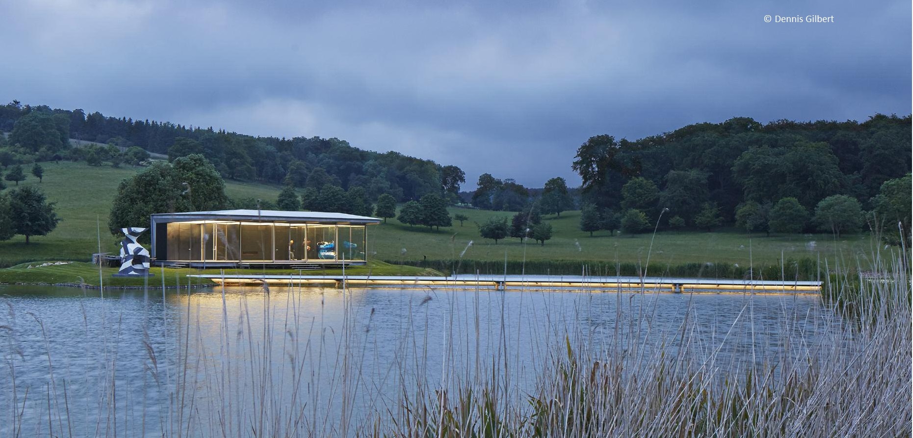 The Island Pavilion will be used for entertaining during the summer months of opera, including dining, receptions, art exhibition and musical recitals and has been designed as a container to house a stainless steel sculpture by Jeff Koons entitled ‘Cracked Egg (Blue)’.