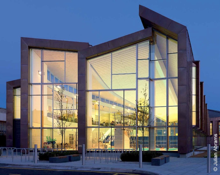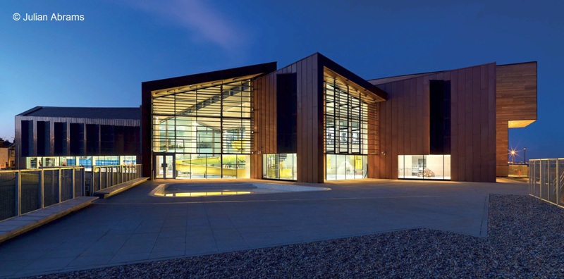 Splashpoint’s dramatic sawtooth roof, with its ranks of sinuous ridges, recalls a series of dunes that curve and twist towards the coast. This concept, which won a RIBA design competition at the project’s inception, has been recognised at a global level as the project was also declared winner of the World Architecture Festival 2013 Sports Category.