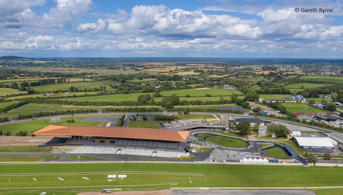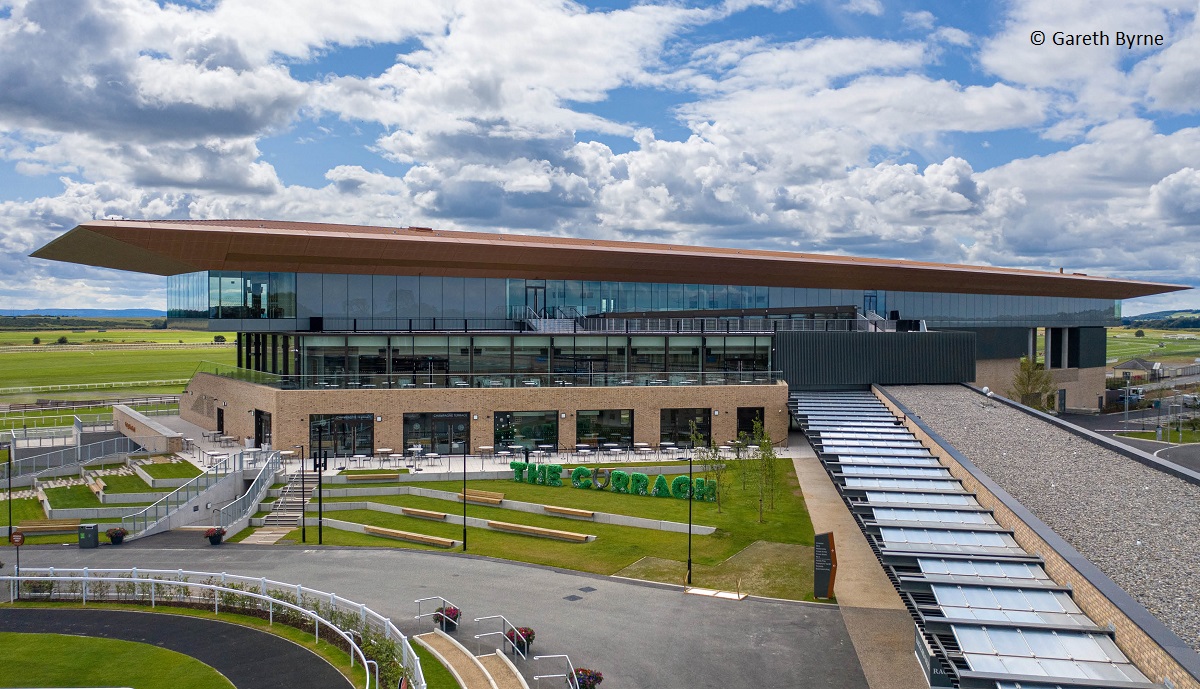 The design responds to the site’s unique context in an elegant, yet unobtrusive manner that embraces a spirit of place. The new grandstand comprises stacked horizontal forms, crowned with a dramatic soaring roof that recognises the planar landscape in which it is set. The copper colour of the roof references the rural, Irish vernacular and agricultural heritage of Kildare, whilst the contemporary panelled roof structure, comprised of aluminium sinusoidal panels, provides a striking yet empathetic appearance amidst the rolling countryside.