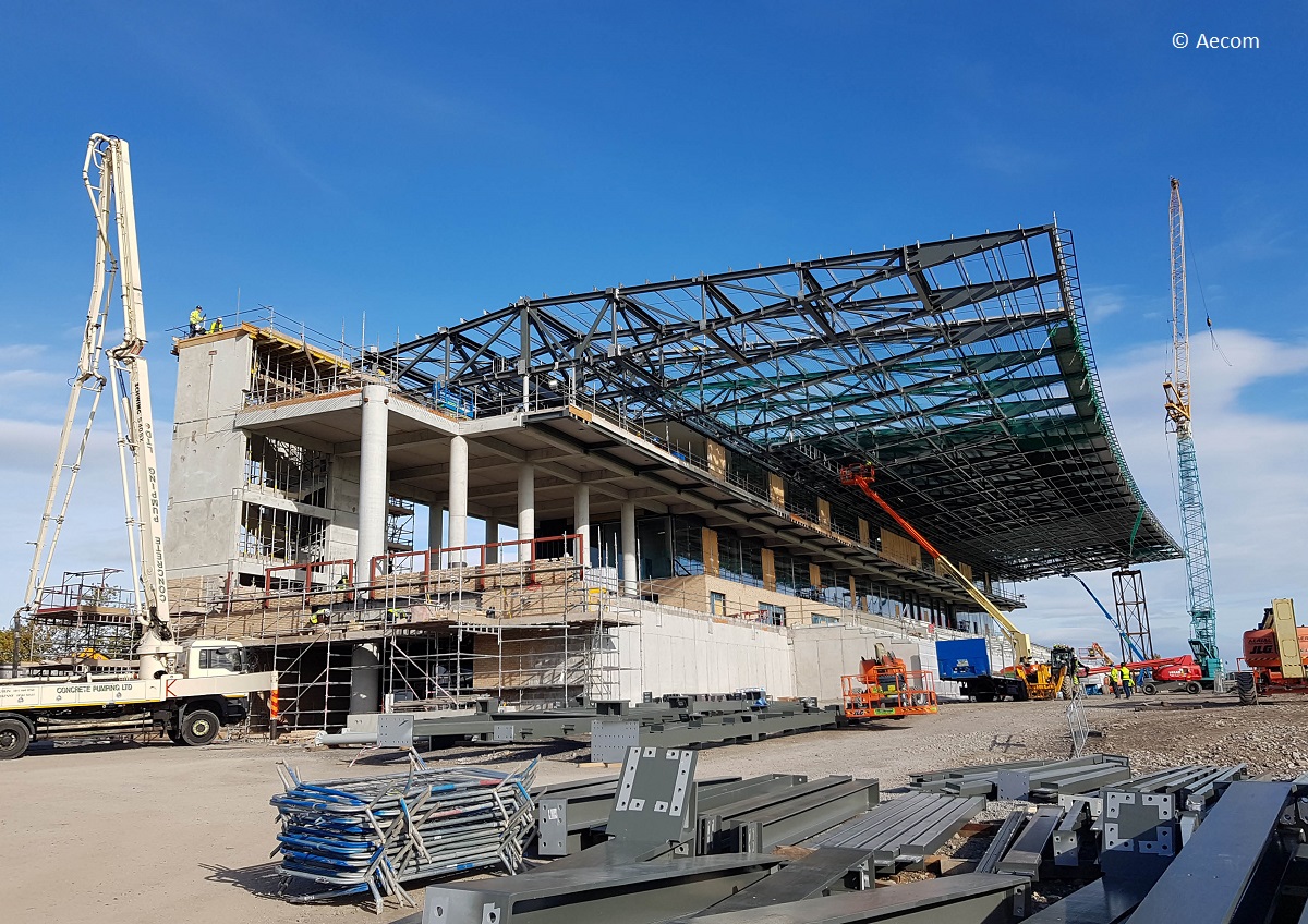 A blade like aerofoil roof is now the dramatic centrepiece to this open landscape and world-famous sporting venue. Behind this bold architectural statement lies a highly accomplished level of detailed design, precise fabrication, and accurate construction to the most demanding of tolerance requirements. A great team effort.