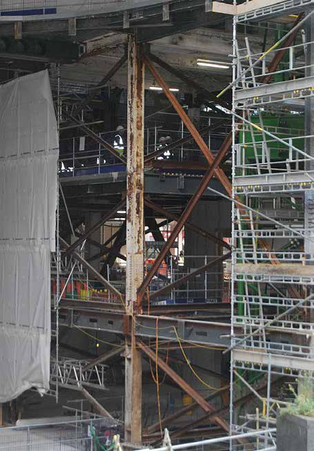 “All of the project’s constraints required careful consideration, and drove the project’s design,” explains Sir Robert McAlpine Project Manager Peter Watts. “The biggest constraint, however, was the fact that we couldn’t gain access to the existing foundations because ground floor retail units and the mall have to remain open throughout our programme.” Sustainability is also at the core of this design, as only steel construction would have allowed the project to reuse the foundations, and then strengthen retained steelwork to allow them to support new lightweight steel floors.