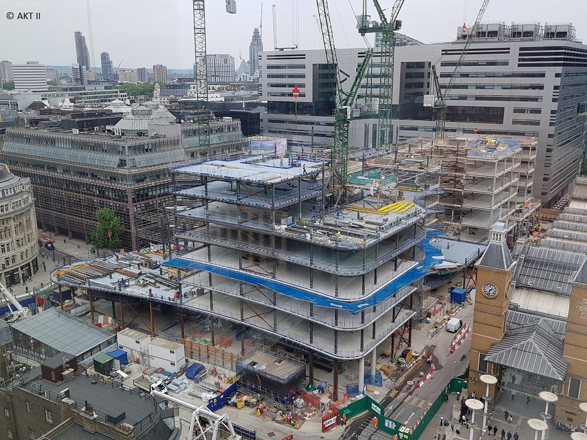 At the central core, an increased grid spacing avoided any strengthening to the existing ground level transfers, while a local increase in grid spacing above the bus station avoided any strengthening works to the existing trusses there. New transfers elsewhere create large new column-free areas, while non-composite, cellular fabricated steel transfer beams deliver the upper level set-backs; taking advantage of the upper levels’ increased structural depth to reduce the tonnage.