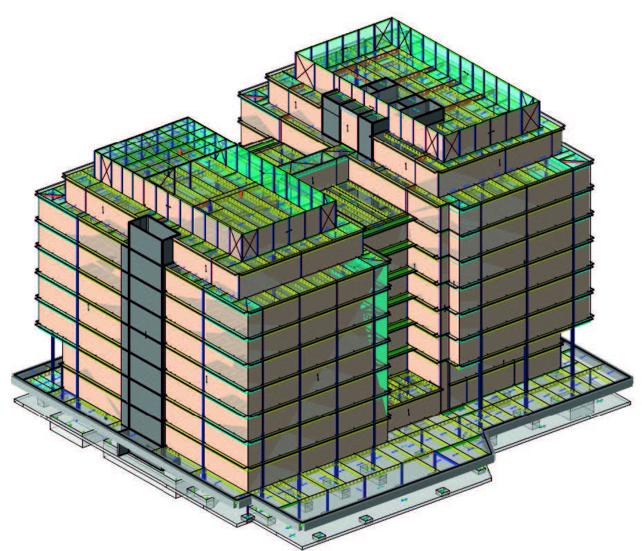 “The top two floors of each block include transfer beams for inset floors. The original design was for double beams to support the inset columns. Using TSD we replaced a number of double beams with Westok plate beams, which could be designed within the model. The model also allowed us to react quickly to the early design changes including removing the original second basement” explains Mott MacDonald Senior Structural Engineer Roger Faires.