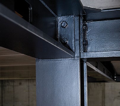 Having the steelwork fully exposed within the completed building means the connections and their bolts will also be on show. Plenty of thought went into the choice of bolts and hexagonal units were chosen as the design team and client thought they offered a look more in keeping with the rest of the scheme. “The exposed internal steelwork and the connecting bolts will be a feature element within the building, and so all of the end plates are flush and the beams and columns are all being repainted once they have been lifted into position in order to get the best possible high-quality decorative finish,” says Bourne Steel Divisional Manager Kevin Springett.