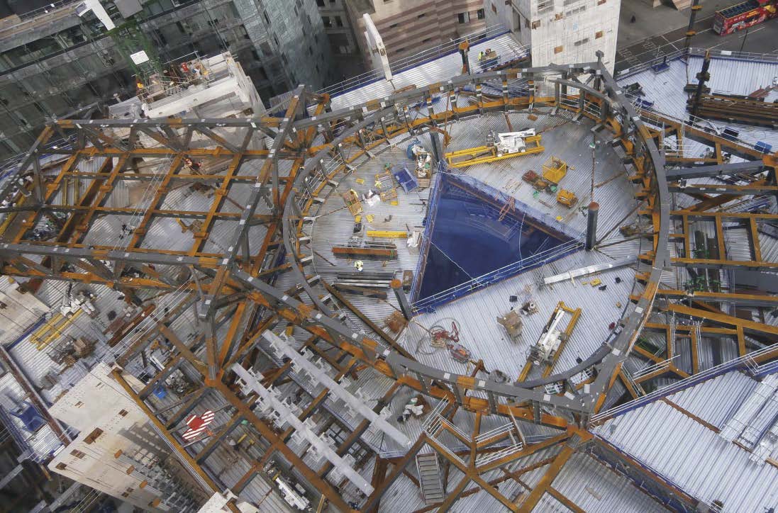 The structure’s sensitive island location meant that physical limitations were set by the adjacent roads, as well as the remains of London Wall running close by. Constructing close to an existing sewer, the adjacent Waterloo & City line tunnel and the new direct link to Bank Underground station all required third party agreements and considerably affected programming.