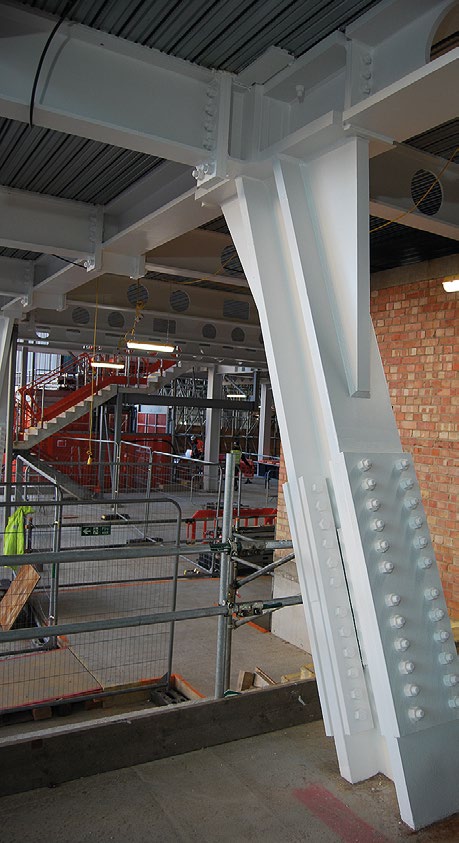 All of the new openings, including the atrium have been formed with a reinstatement method, whereby design capacity, fixings and detailing have been provided ready for extra steel beams to be brought into the building, to simply infill the voids if the current tenants or new tenants in the future want an uninterrupted floorplate.