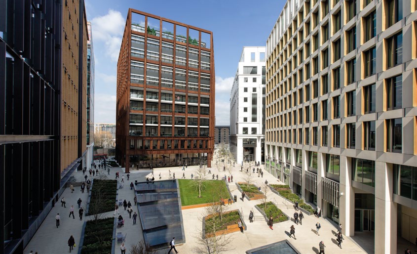 An exo-skeleton, fabricated entirely of weathering steel, has created the standout appearance and the column-free spans for the final commercial development at London’s Pancras Square.