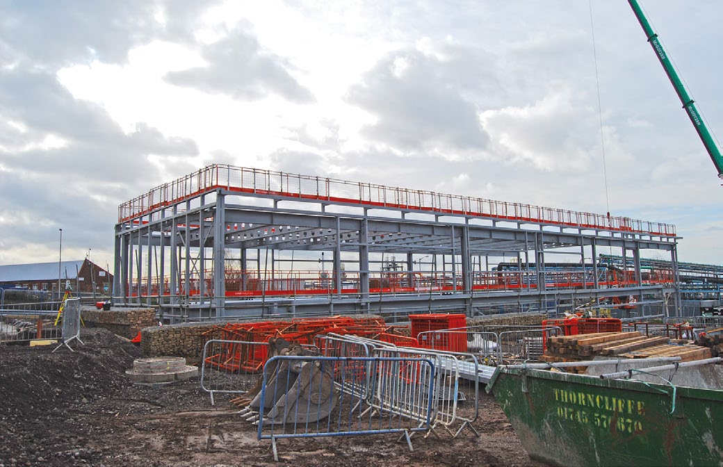 A £23M steel-framed office complex is under construction at the Runcorn site of INEOS’s INOVYN ChlorVinyls business. The company plans to relocate staff from a number of existing buildings on its chemical complex to this new dedicated four-storey building, which will offer 6,700m2 of floor space.