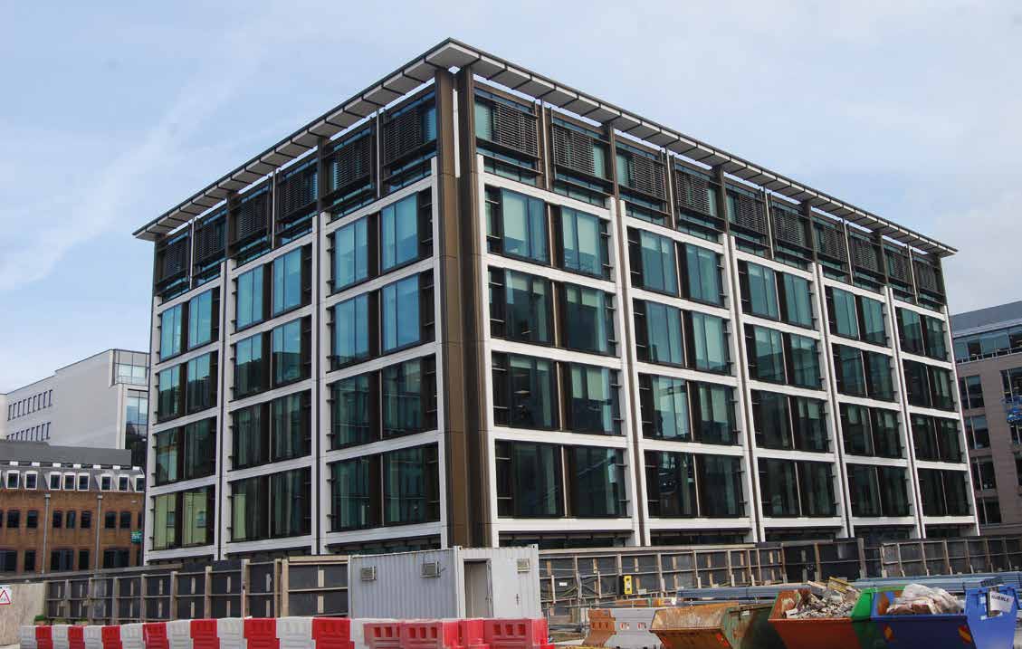 With a similar design to its completed neighbour, this office block’s steel frame is based around a regular grid with perimeter columns spaced at 7.5m centres and creating internal clear spans of up to 12m-long. The building will provide 6,400m2 of space over six floors, have floor-to-ceiling windows on all four sides, and achieve a BREEAM “Excellent’ rating.