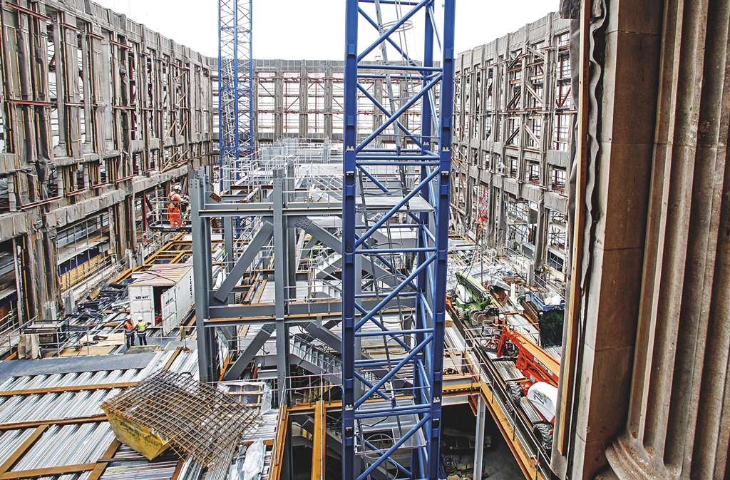 The steel-framed façade dates from the 1920s and 1930s, however some areas were added during the 1960s. The steel columns are all encased in Portland stone and consequently in good condition. However, steelwork originating from various decades required extensive laboratory tests to determine its make-up and suitability prior to making the welded connections for 250 new façade retention brackets. This demonstrates the adaptability of steel-framed structures both old and new.