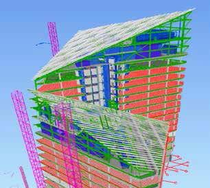 Some plunge columns acted as temporary supports for the cores, allowing them to be constructed early in the programme, which in turn allowed the steelwork to start sooner. “Using steel plunge columns gave us two advantages,” adds Mr Seel. “They acted as temporary steel supports for the cores and then later they were cast in concrete to become part of the project’s composite reinforcement.”