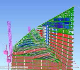 Two trusses add to the complexity of the South roof. The truss members were delivered to site as individual sections and lifted by the tower crane to the level 10 slab, which was used as a temporary laydown area during erection. Each truss was built up in its final position and due to its shape, was temporarily propped with a column and jacking system from the Level 10 slab. Once the first section was securely in position, the remainder of the sections were built from it. The trusses once complete support the Level 11 and 12 plant room floors.