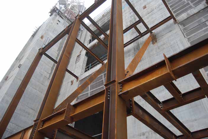 “Most of the remainder of our 9,500t steel tonnage has been erected via tower cranes that are positioned on top of the core,” explains William Hare Senior Site Manager Ben Burns, “apart from the 90t perimeter columns which required a 90t-capacity mobile crane to be brought to site.”