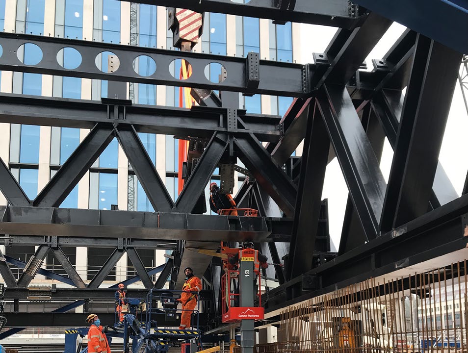 Containing more than 7,000t of structural steelwork, the project will on completion be a stand-out building featuring an exoskeleton on all four elevations. The expressed and exposed nature of the steel frame also extends to the interior of the building, where columns, beams and connections will also be on display. Below ground level, the steelwork is no less impressive as just over 60% of the total footprint of the building is sat on top of a series of trusses that span the A38 dual carriageway tunnel, a key transport artery through the city. In addition, the site overlays a major services tunnel. This, along with the proximity of the adjacent above ground highway results in an unusually challenging site for a development in Birmingham.