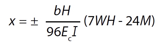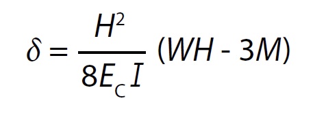 Some of these effects can be explored at concept design stage by considering the deflection of a cantilever under lateral load with a discrete moment applied at the appropriate position. For example, the maximum bending deflection d of a vertical cantilever of height H under a uniform load with an opposing applied moment M at mid height is given by: