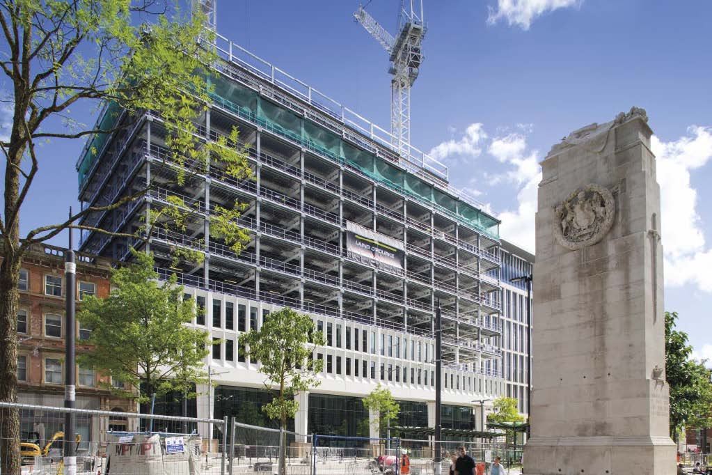 This scheme of new Grade A offices in the heart of Manchester’s civic centre responds to the challenge of this site of prime importance. Not only does the glazed stone tracery respond appropriately to the location, but the elegant steel-framed building with 18m clear spans provides flexible accommodation highly attractive to tenants.