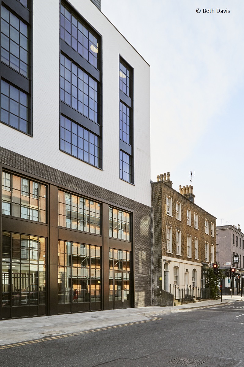 To suit the new layout, the building’s existing cores were remodelled and repositioned, providing a single primary core for the unified building and creating open-plan spaces suited to a range of new tenants. The existing mansard roof provided poor office space, with limited natural daylight due to small windows, so this was removed to facilitate the new two-storey vertical extension, which has created fully functioning, modern upper floor space. The impact on the streetscape has been reduced by setting the floors back from Shepherdess Walk and the northern and western elevations.