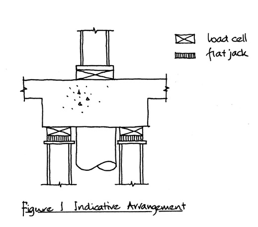 The new columns support a series of transfer beams at roof level which act compositely with the concrete slab. In the permanent state, these transfer beams support three levels of steelwork which, during the erection phase, were supported from below. Following the casting and the development of sufficient strength in the concrete at roof level but before casting concrete on the floors below, the temporary supports were removed and the structure was lowered until it was hanging from the transfer beams. During this operation, additional load was transferred into the new columns via the transfer beams, requiring monitoring and control of the load in the existing concrete columns.