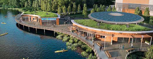 Caunton Engineering have also erected three steel-framed single storey restaurant blocks that overlook the lake and sit adjacent to the boardwalk structure.