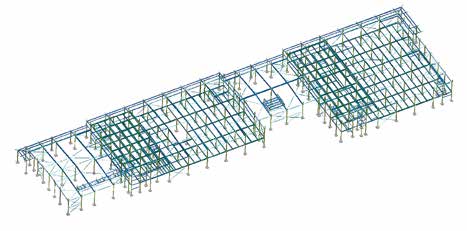 Despite their apparent simplicity, portal frames are relatively complicated structurally – their flexibility means that second-order effects are generally important and the potential for reversing bending moments mean that the restraints to the compression flange must be carefully considered. Comprehensive guidance is provided in P399. For maximum efficiency, frame design will be completed using software specifically developed for portal frames.