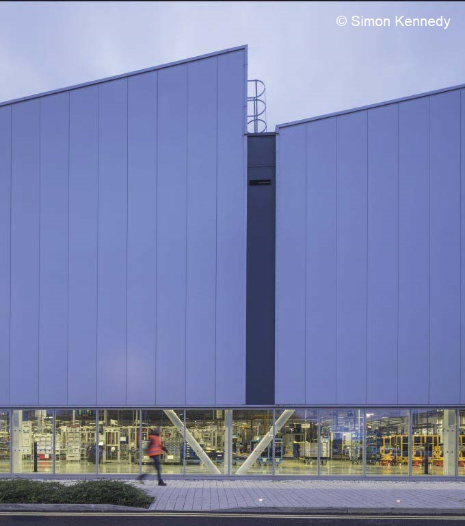 Innovation, collaboration and the well-being of people at the facility have shaped the success of the building. A simple layout was derived from optimum operational adjacencies and designed for flexibility, providing both an efficient process flow for manufacturing and giving staff easy access to support facilities. Naturally-lit machine and assembly halls are flanked by supporting office and ancillary buildings. This approach optimised production performance and blurred the boundaries between production and offices through visual transparency, clear movement and social spaces, helping to break down the barriers of communication between staff.