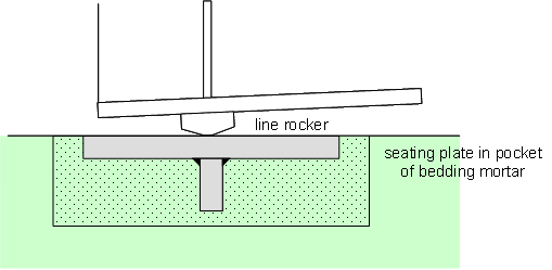 Whether a simple bank pad or a bank pad supported on piles is used, the lower part of the end screen wall is usually concreted first, leaving a horizontal construction joint. The main girders sit on this interface and are usually supported on ‘temporary bearings’. Typically, a pocket is left for the casting-in of a seating plate, which can be accurately levelled to suit the girders. Temporary restraint of the main girders, both laterally and longitudinally, needs to be provided, since the simple bearing detail does not provide restraint. The remainder of the end screen wall (around the main girders) is usually cast after the deck slab, to minimize the restraint moment due to permanent actions.
