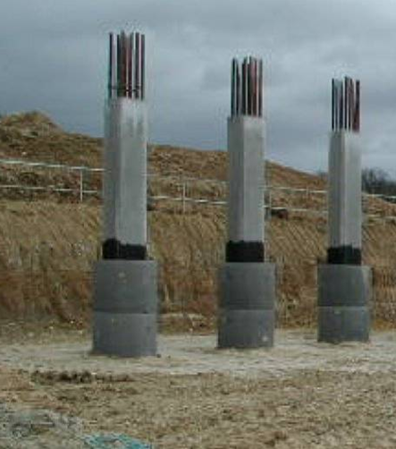 Although the soil resistance to the longitudinal displacement of fully embedded piles (due to expansion and contraction) is modest, many designers have chosen to avoid this interaction, and the tendency to create ‘post holes’ around them piles by creating an annular space around them, between the underside of the end screen wall and original formation level (or the level of the roadway below). This is achieved by forming sleeves of precast concrete manhole rings around the piles or, for smaller piles, of polythene or UPVC piping. The buckling resistance of the pile over the length within the annulus then needs to be considered. To improve confidence about the durability of the columns within the annulus, some Technical Approval Authorities require provision for the annulus to be inspectable (by boroscope or similar instrument) – this can be achieved by providing a duct from the end screen wall.