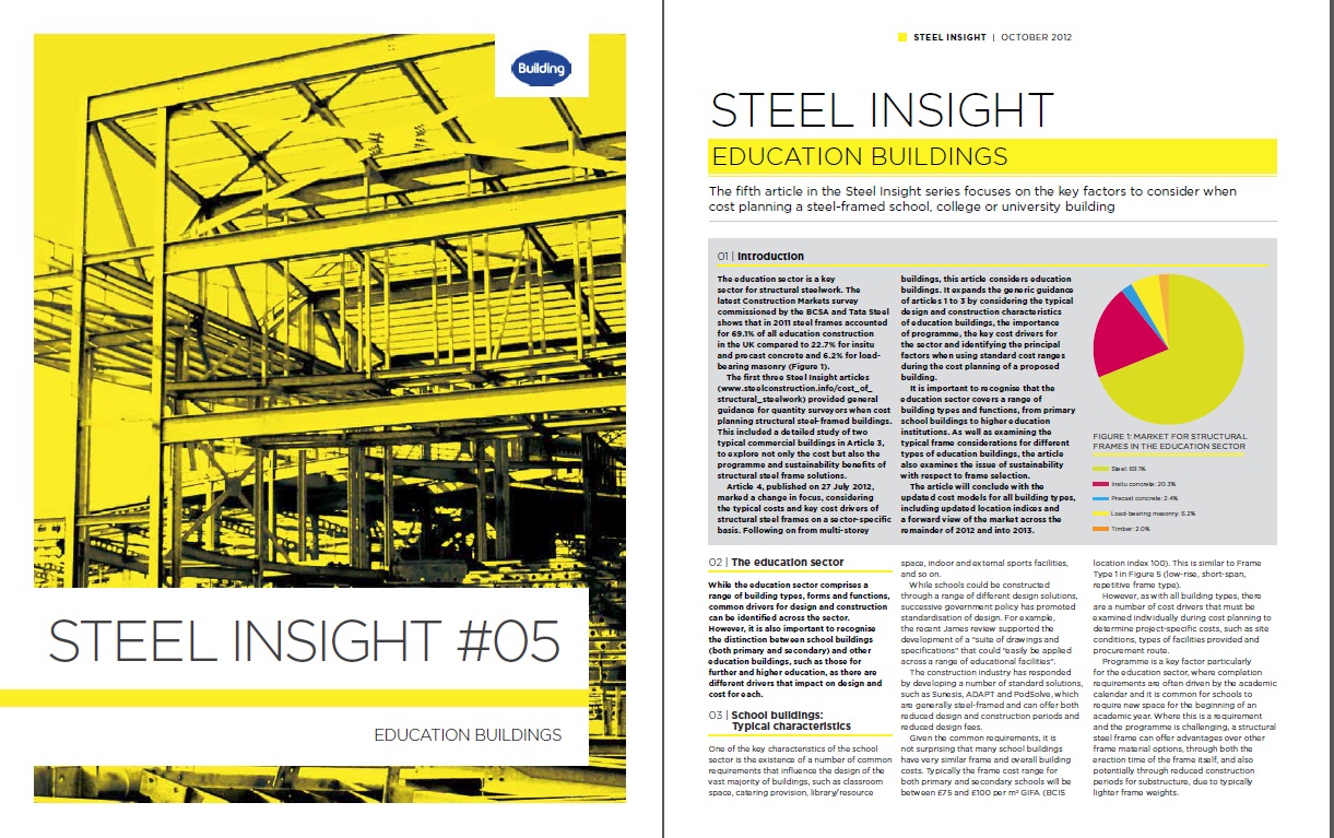 This article focuses on the cost factors and the cost planning of steel framed education buildings. It builds on the general guidance on the cost of structural steelwork, and cost planning through design stages for structural steel framed buildings by considering the typical design and construction characteristics of education buildings. It explores the importance of programme, the key cost drivers for the education sector and the principal factors to consider when using standard cost ranges to ensure that realistic cost plans are produced during the design and early stages, when a number of frame options may be under consideration.