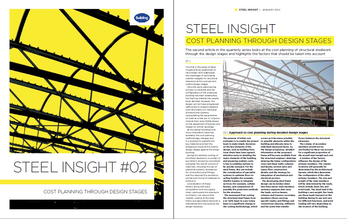 The purpose of initial cost estimates is to enable the project team to make timely decisions on the key elements of the design, such as building form. Once these have been agreed attention turns to detailing the major elements of the building and preparing realistic costs is key to enable options to be quickly assessed. For the steel frame this can include the consideration of specialist systems to optimise floor-to-ceiling heights or integrate services and comparisons of possible fire protection methods for the structure.