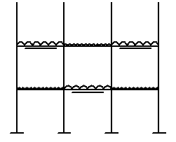 A continuous frame can be continuous throughout the entire frame where all the joints are 'rigid' (left hand figure), or where only a discrete part of the frame is continuous (right hand figure). Both types of continuous frames ban be designed to provide appropriate resistance due to lateral loading.