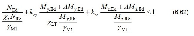 - A cross section with a high ratio of Iyy to Izz that complies with Class 1 or Class 2 under combined major axis bending and axial compression