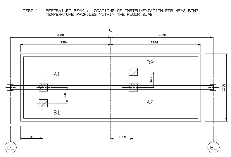 - Steel and concrete temperatures in the floor between beam and furnace wall at B2