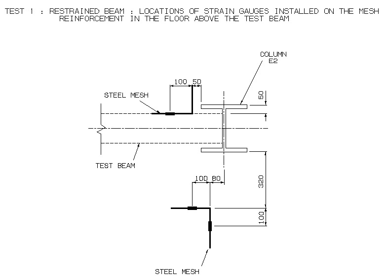 - Location of strain gauges installed in the mesh reinforcement in the floor above the test beam