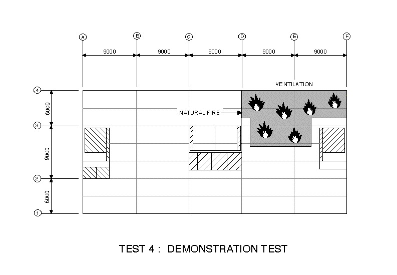 The first test was carried out on a single unprotected beam and surrounding area of slab. Further tests were carried out in compartments varying in size from 50m² to 340m² with fire loadings provided by gas, wooden cribs and standard office furniture. Columns were protected but beams were not. Despite atmosphere temperatures of over 1200°C and temperatures on the unprotected steel beams of 1100°C in the worst case, no structural collapse took place. The full set of data from the four British Steel tests is to be found in this article. Descriptions of the tests and guidance on how to interpret the data can be found by following the link here.